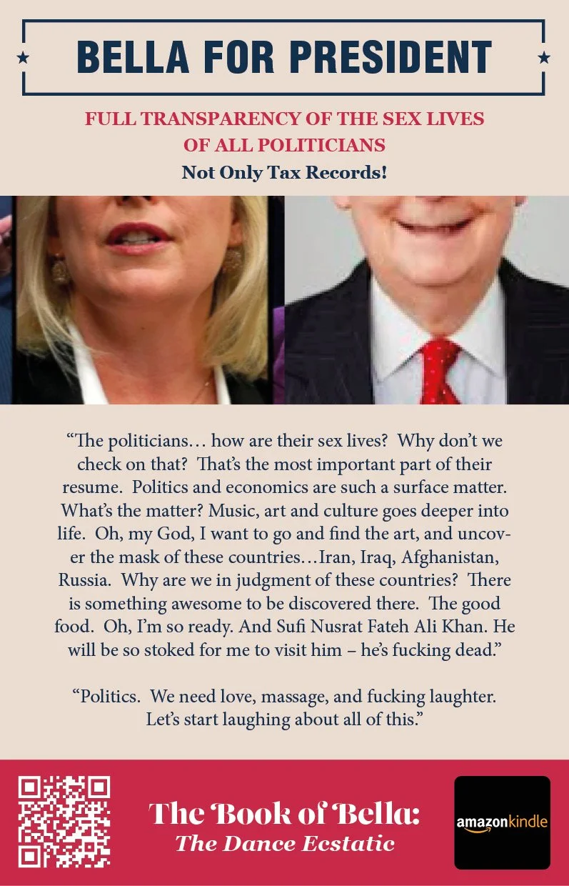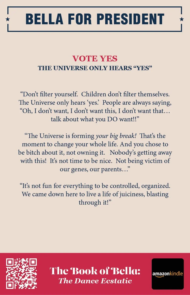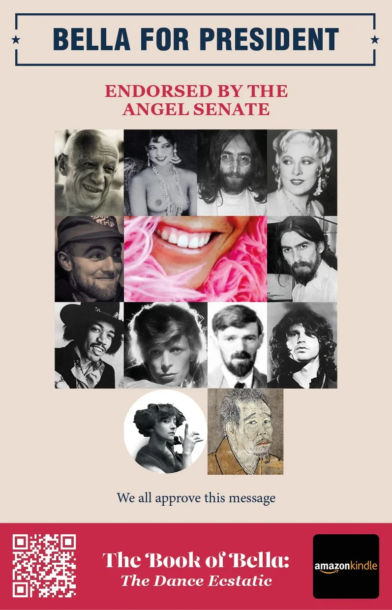 Bella is a real person living in The Garden of Eden in our world today. You can’t find her on social media. You find her dancing naked on the beach in Laguna. On a train In Amsterdam where she’ll tell you, “I’m on the network of the Universe.”