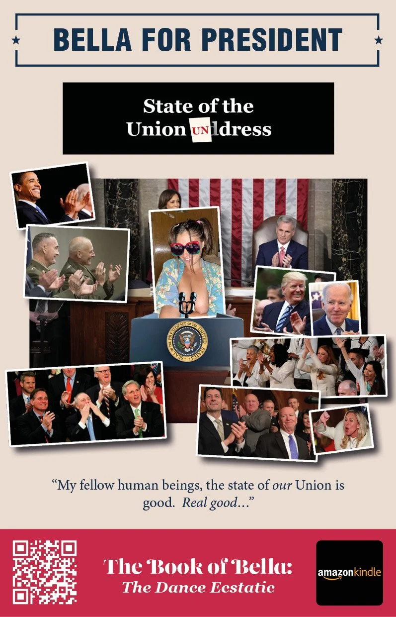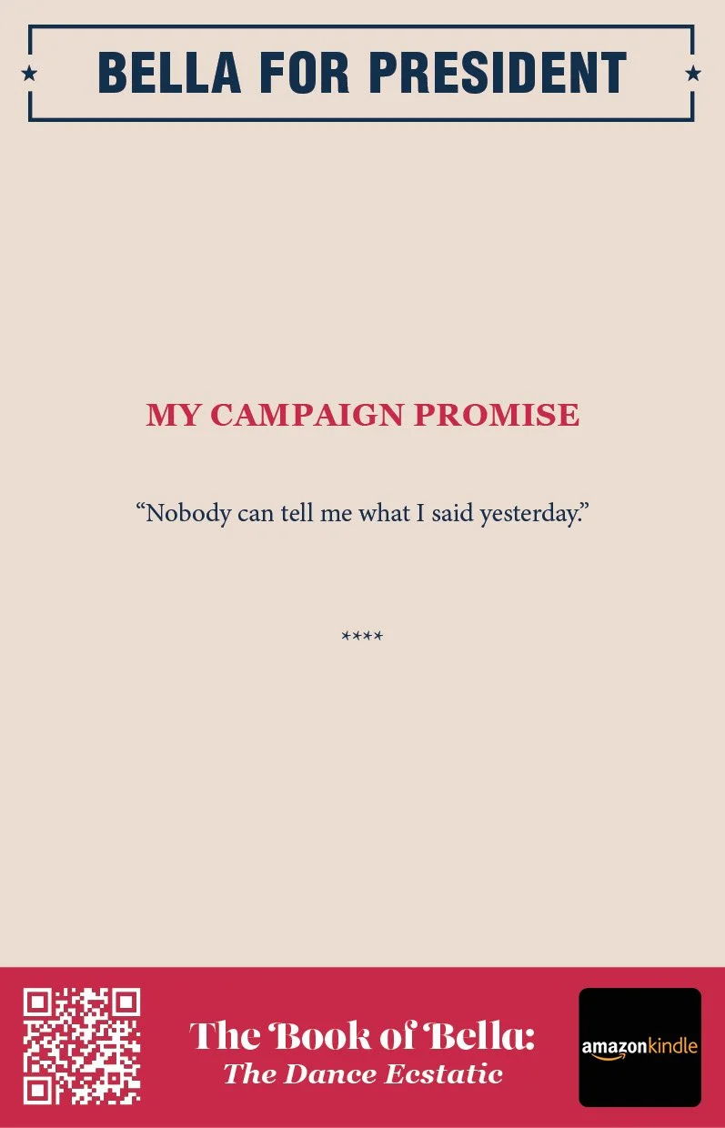 “There’s so much more. Step up! We’ve got big things to do! Thank you, Donald Trump, for making me realize that I could be president! Make the world fun again! I need some presidential retreats with those men with their big nuclear thing. A woman knows how to handle that…”