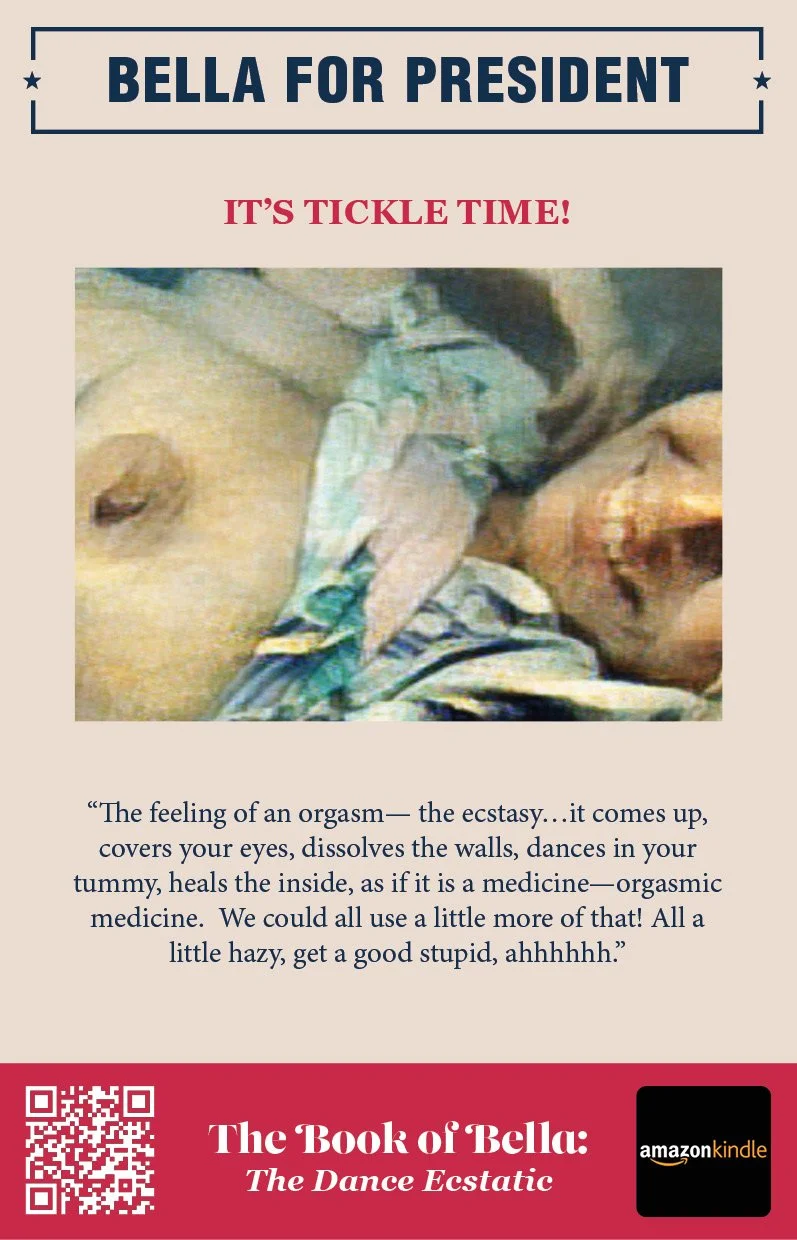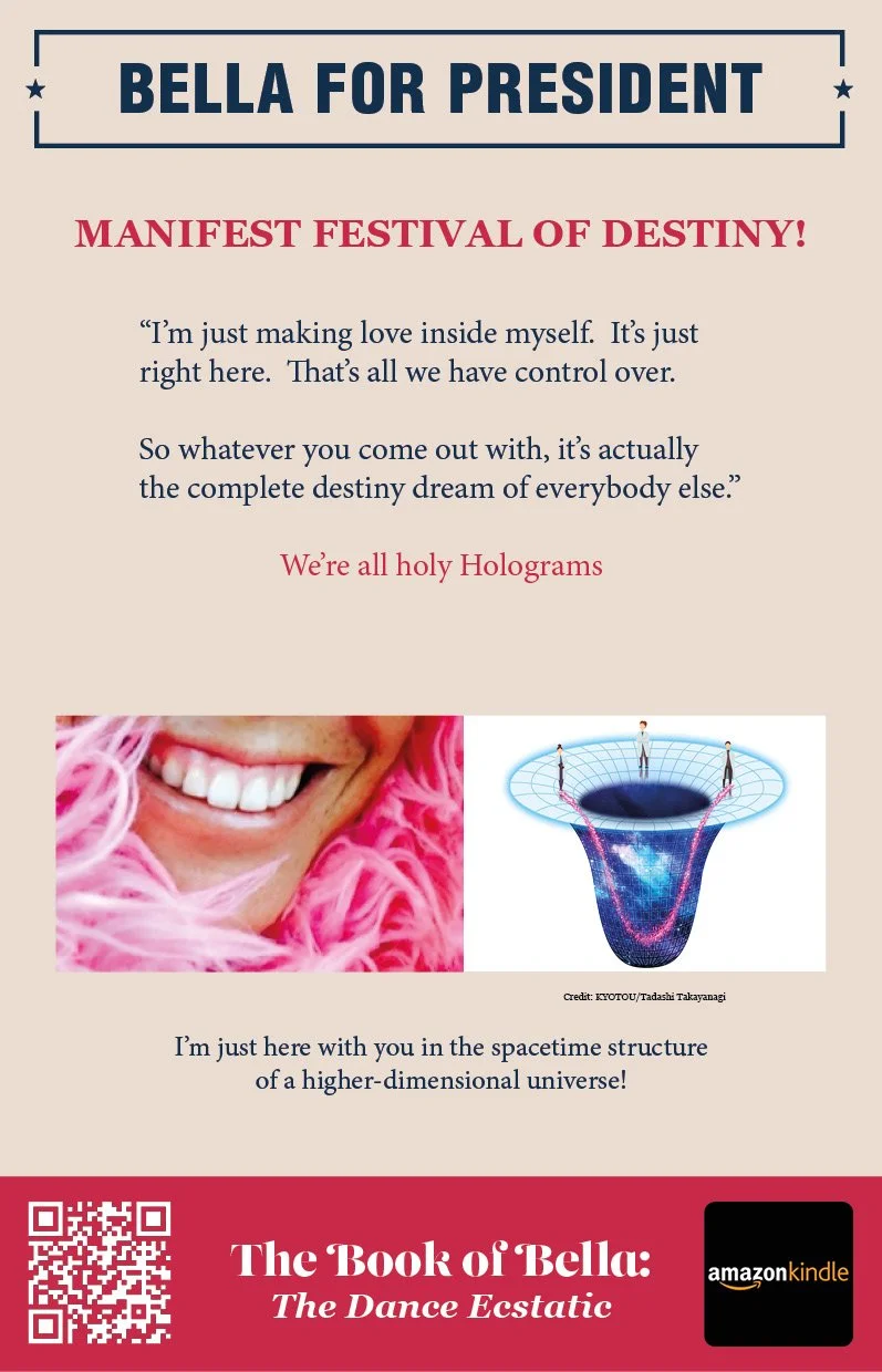“I’m having a party inside my body,” she titters. Bella takes sex positivity and polyamory to a whole new level—the naked sacred. True love in deliciously curved spacetime.